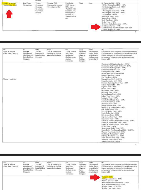 Robert Murray is a trustee of the Cambridge Financial Group. This document reports his other holdings. He is a 100% owner of both Cafe Escadrille and Ten LLC, which is the owner of 1000 District Ave, the ICE facility.