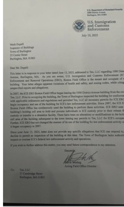 Mass. lawmakers press ICE for answers on use of Burlington office for detainees