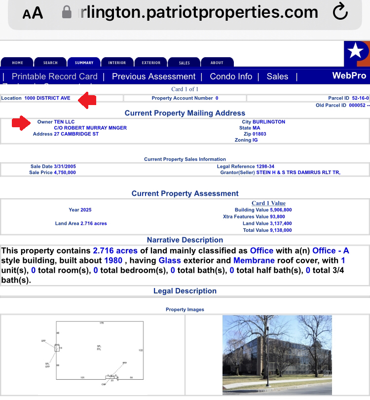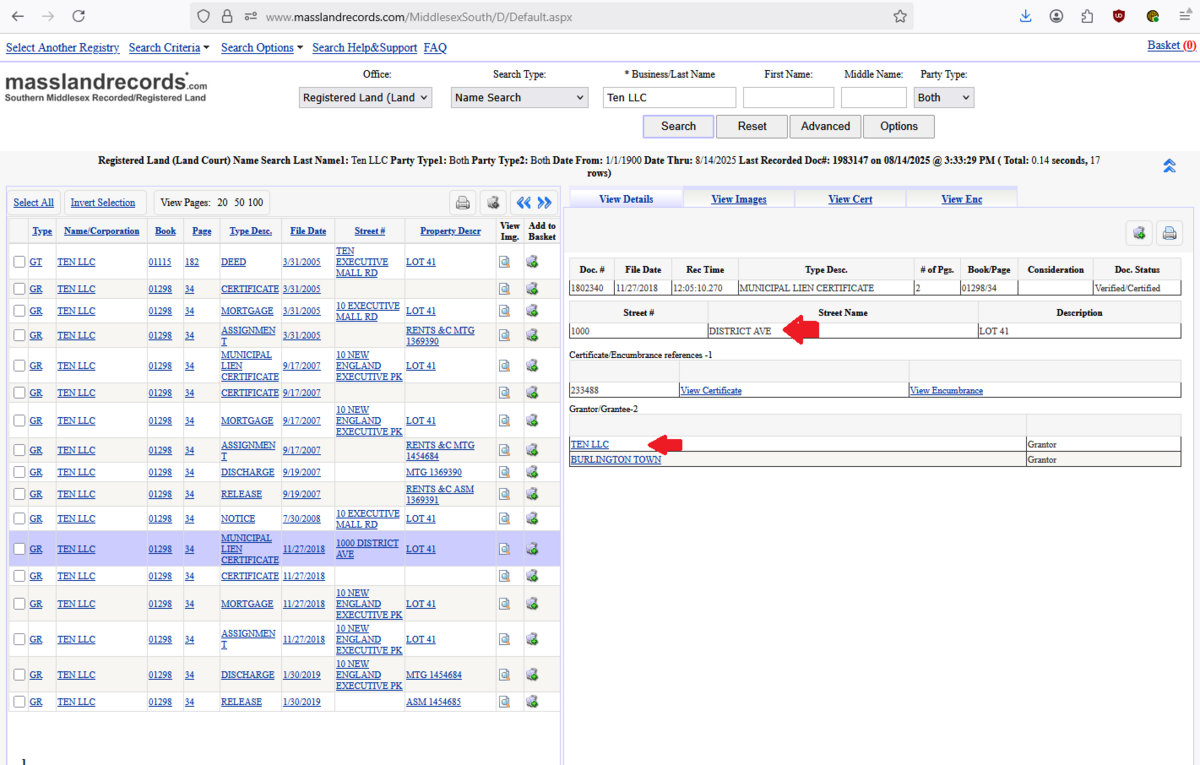 2. Ten LLC is the owner of the ICE facility at 1000 District Ave, Burlington.