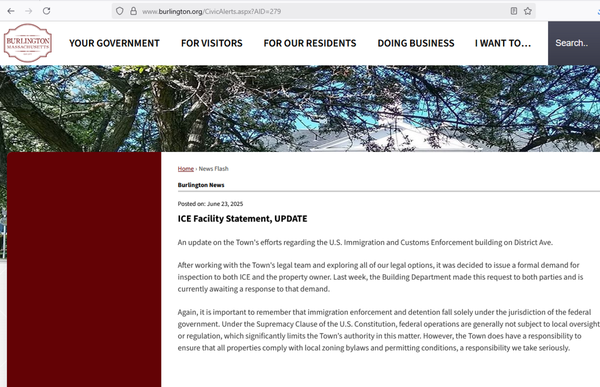 On August 9th, we received an informal communication from a person in the Burlington town government, telling us that Murray's lawyers and ICE's lawyers had collaborated to deny the town access for an inspection. We do not have documentation or a confirmation of this claim.
